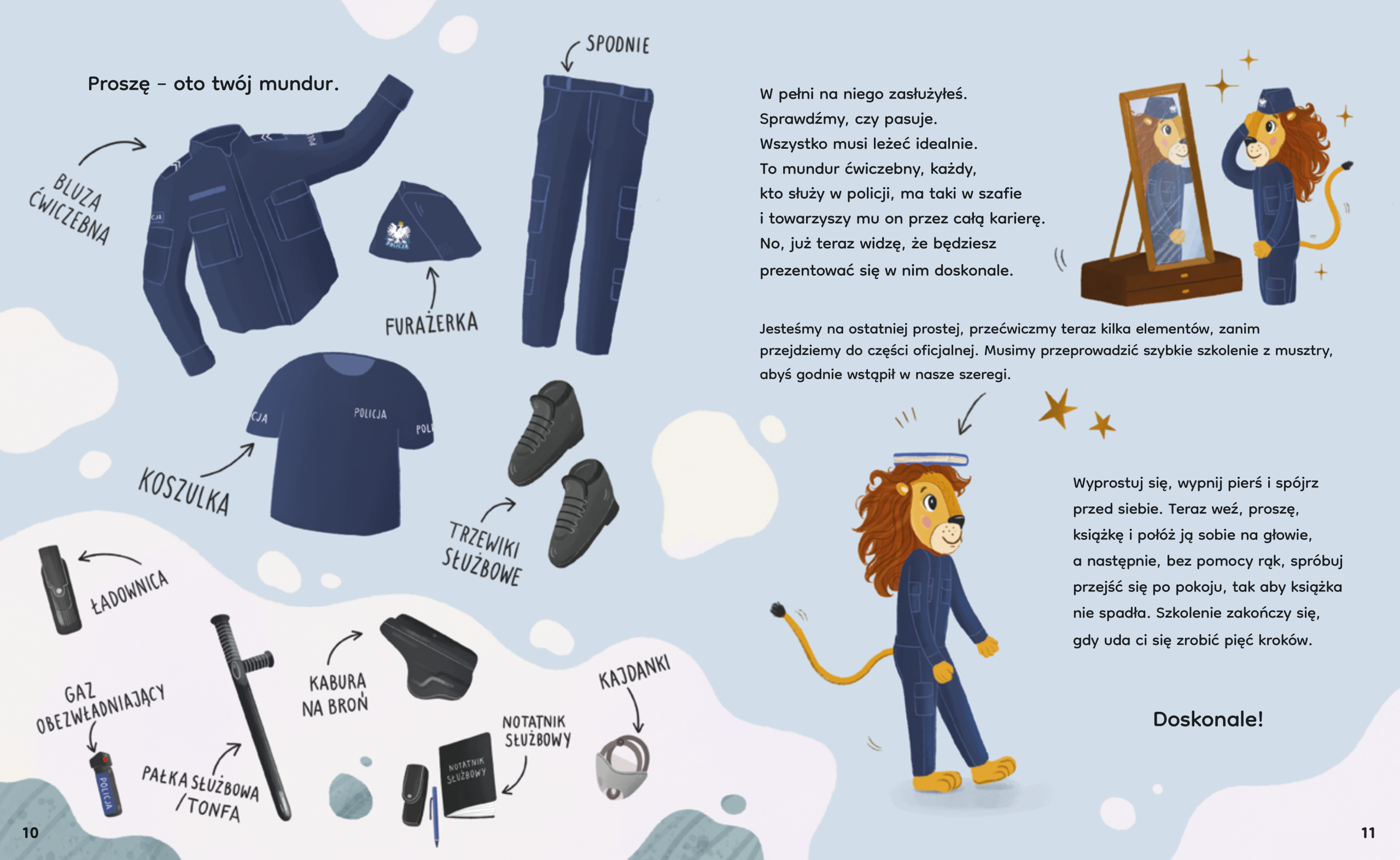 Młody czytelnik otrzyma swój pierwszy mundur, będzie brał udział w zaprzysiężeniu, a następnie zapozna się ze swoim miejscem pracy i weźmie udział w odprawie. Najlepsze dopiero przed nim, bo w końcu nadejdzie czas na wybór specjalizacji.