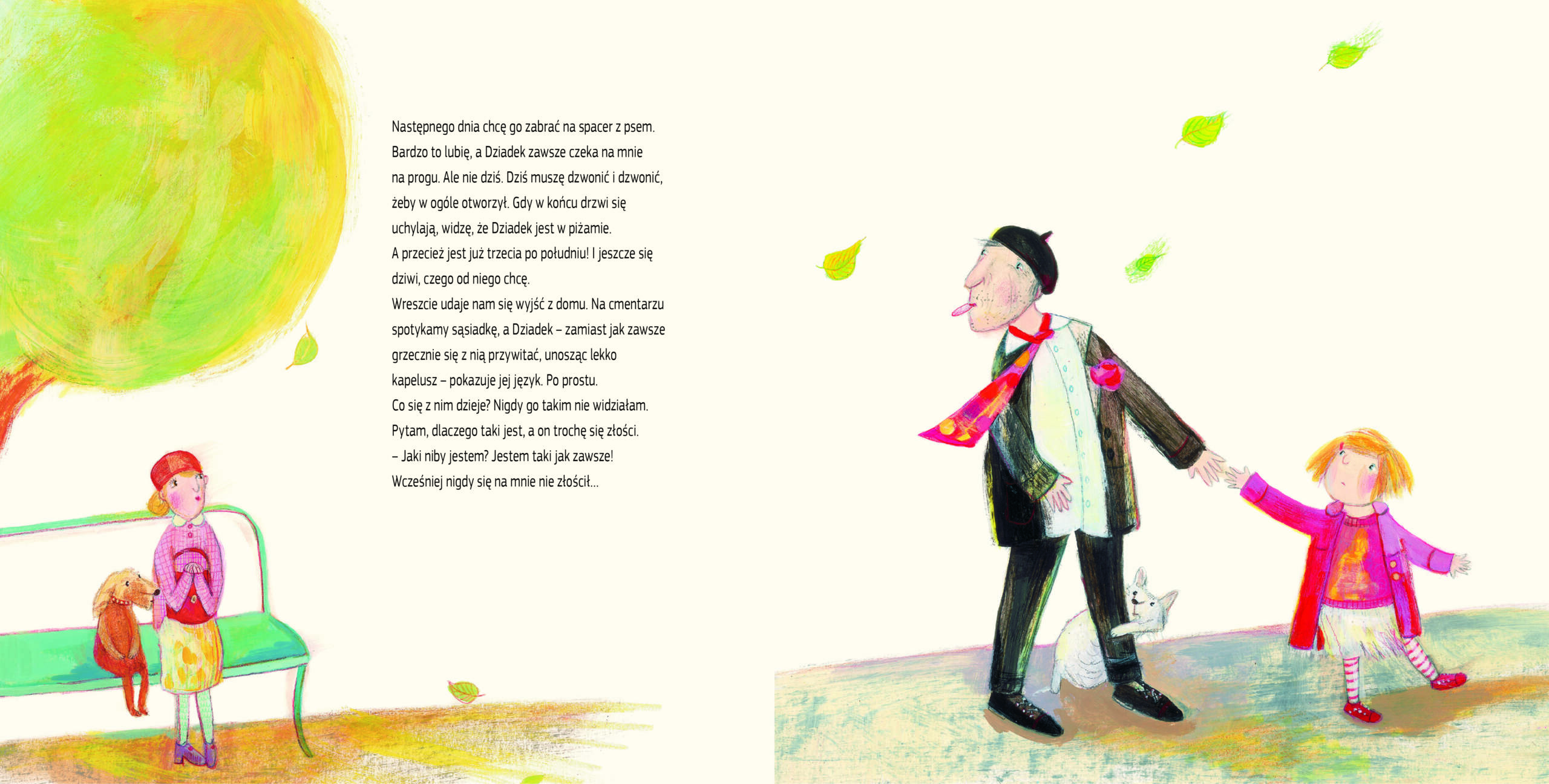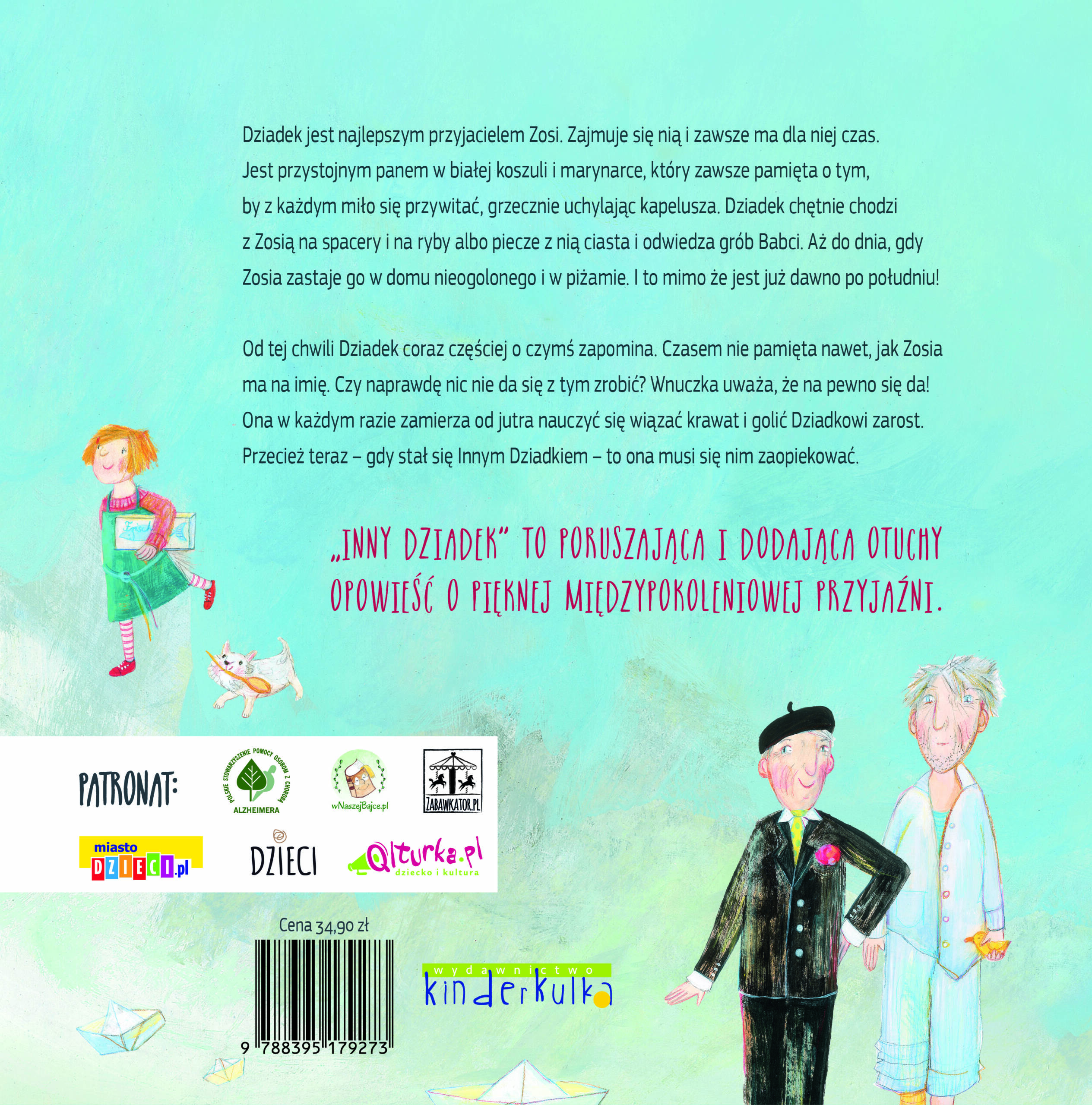 „Mój Inny Dziadek” to wzruszająca historia, która pomaga dzieciom zrozumieć, co dzieje się z osobami dotkniętymi demencją. Dzięki prostej narracji mogą oni towarzyszyć bohaterce w jej przeżyciach i zmierzyć się z trudnym tematem choroby, oswoić lęk i zamienić go w coś pozytywnego.