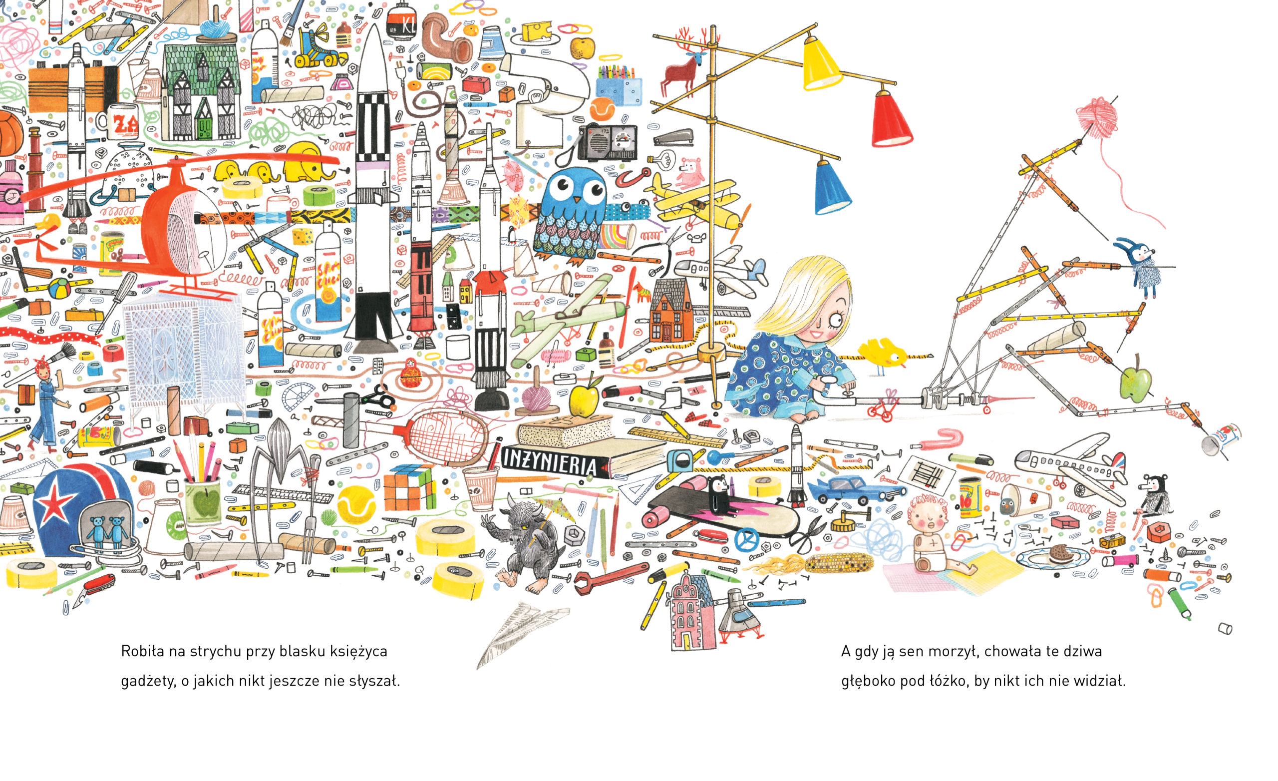 Pełna humoru opowieść o pewnej cichutkiej jak myszka osóbce, która w tajemnicy przed światem „w kryjówce pod dachem kleciła maszyny z nie lada rozmachem”. I jeszcze o arcymądrej cioci, która wiedziała, co zrobić, żeby marzenia dziewczynki się spełniły. Rewelka. Zupełnie jak Rózia. Rózia inżynierka.